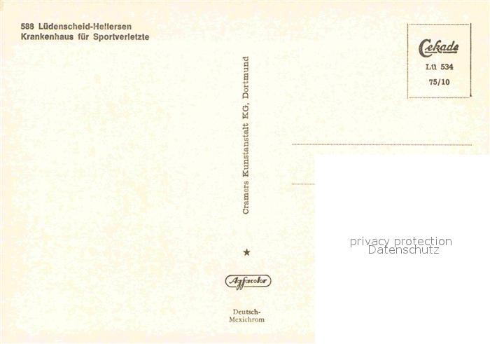 72837538 Hellersen Luedenscheid Krankenhaus fuer Sportverletzte postalisch nicht gelaufen Erhaltung siehe scans [PaolaD17] KatCode: 11110005962032