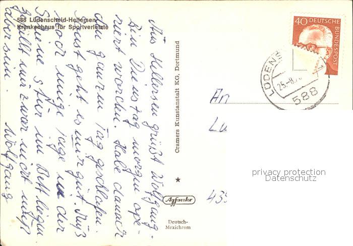 72112892 alte Postkarte Hellersen Luedenscheid Krankenhaus fuer Sportverletzungen postalisch gelaufen Erhaltung siehe scans KatCode: 11110005962032