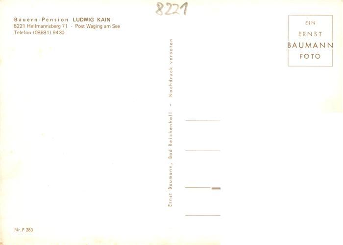 73893463 Hellmannsberg Waging See Bauern Pension Ludwig Kain Gastraeume Liegewiese postalisch nicht gelaufen Erhaltung siehe scans [WerneD78] KatCode: 11110009189165
