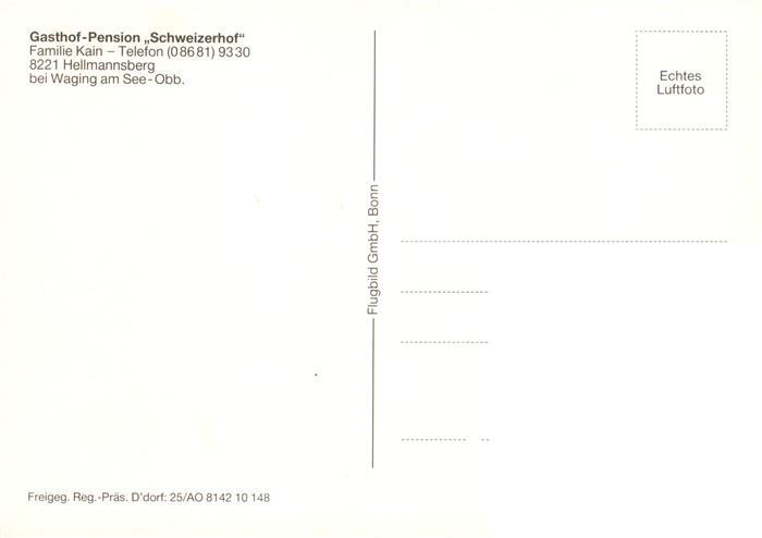 73902873 Hellmannsberg Waging See Gasthof Pension Schweizerhof Fliegeraufnahme postalisch nicht gelaufen Erhaltung siehe scans [WerneD78] KatCode: 11110009189165