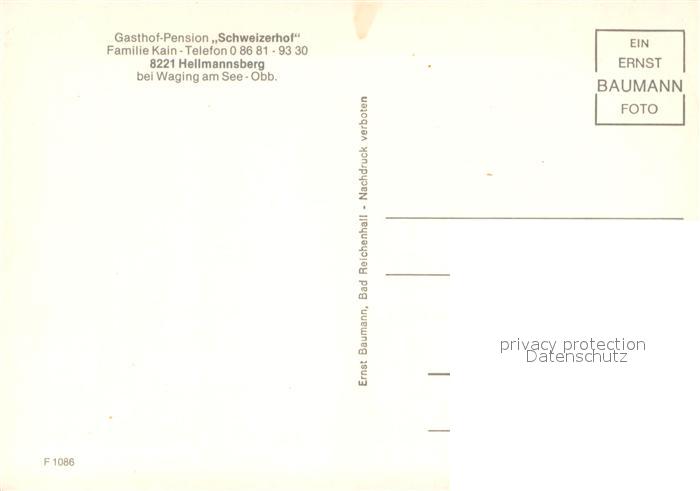 73653604 Hellmannsberg Waging See Gasthof Pension Schweizerhof Restaurant Swimming Pool postalisch nicht gelaufen Erhaltung siehe scans [FriedD77] KatCode: 11110009189165