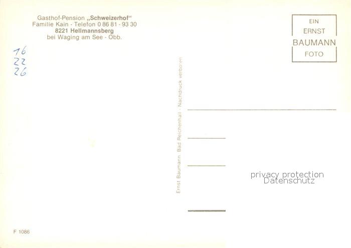 73723586 Hellmannsberg Waging See Gasthof Pension Schweizerhof Restaurant Swimming Pool postalisch nicht gelaufen Erhaltung siehe scans [FriedD77] KatCode: 11110009189165