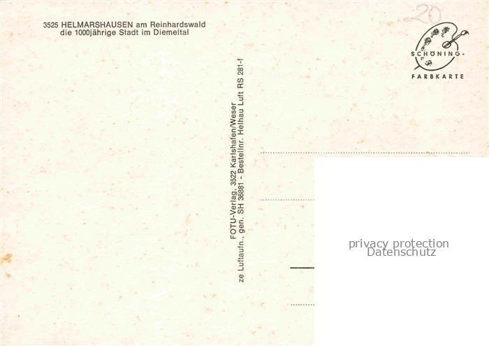 74040498 Helmarshausen 1000jaehrige Stadt im Diemeltal am Reinhardswald postalisch nicht gelaufen Fliegeraufnahme Erhaltung siehe scans [FriedD77] KatCode: 11110006633002