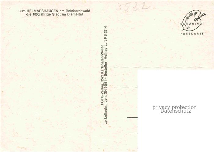 34144791 Helmarshausen Bad Karlshafen Hessen Panorama 1000jaehrige Stadt im Diemeltal am Reinhardswald postalisch nicht gelaufen Fliegeraufnahme Erhaltung siehe scans [FriedD77] KatCode: 11110006633002