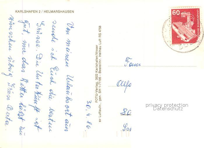 73542107 alte Postkarte Helmarshausen Fliegeraufnahme postalisch gelaufen Erhaltung siehe scans [WerneD78] KatCode: 11110006633002