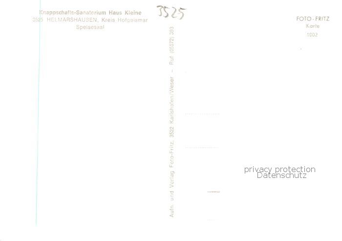 73870251 Helmarshausen Knappschafts Sanatorium Haus Kleine Speisesaal postalisch nicht gelaufen Erhaltung siehe scans [WerneD78] KatCode: 11110006633002