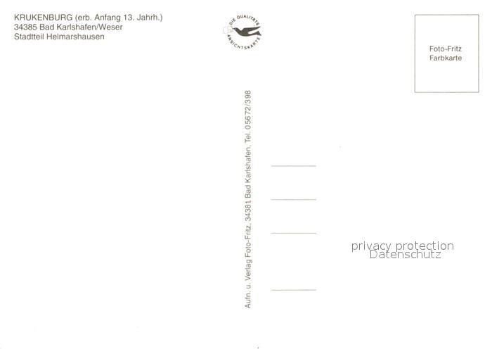 73214502 Helmarshausen Krukenburg 13. Jhdt. Burgruine postalisch nicht gelaufen Erhaltung siehe scans [FriedD77] KatCode: 11110006633002