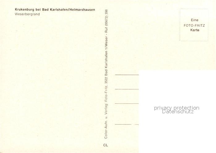 73214505 Helmarshausen Krukenburg Burgruine Weserbergland postalisch nicht gelaufen Erhaltung siehe scans [FriedD77] KatCode: 11110006633002