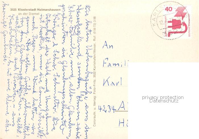 73833426 alte Postkarte Helmarshausen Panorama postalisch gelaufen Erhaltung siehe scans [WerneD78] KatCode: 11110006633002