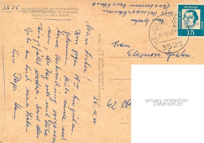 73635079 alte Postkarte Helmarshausen Sanatorium Haus Kleine postalisch gelaufen Erhaltung siehe scans [WerneD78] KatCode: 11110006633002