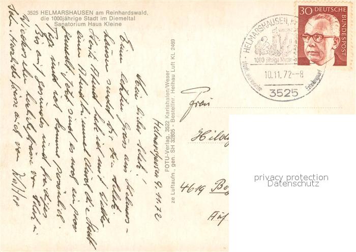 73720472 alte Postkarte Helmarshausen Sanatorium Haus Kleine postalisch gelaufen Fliegeraufnahme Erhaltung siehe scans [FriedD77] KatCode: 11110006633002