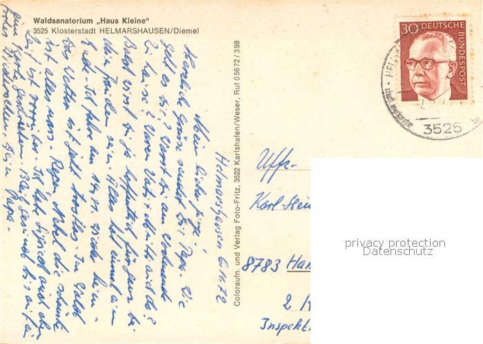 73720473 alte Postkarte Helmarshausen Waldsanatorium Haus Kleine postalisch gelaufen Erhaltung siehe scans [FriedD77] KatCode: 11110006633002