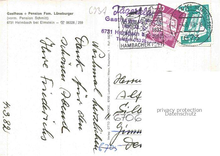 74046858 alte Postkarte Helmbach Elmstein Gasthaus Fam Lueneburger Gastraeume Panorama postalisch gelaufen Erhaltung siehe scans [WerneD78] KatCode: 11110007332014