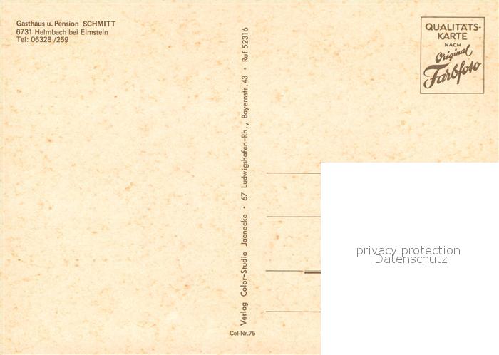 73664827 Helmbach Elmstein Gasthaus Pension Schmitt Gastraeume Panorama postalisch nicht gelaufen Erhaltung siehe scans [WerneD78] KatCode: 11110007332014