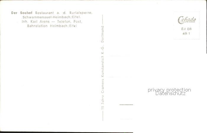 72477858 Helmbach Elmstein Restaurant Seehof Rurtalsperre postalisch nicht gelaufen Erhaltung siehe scans KatCode: 11110007332014