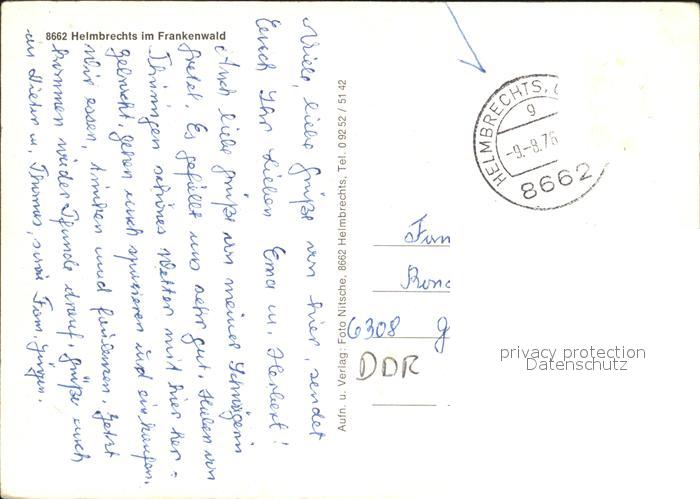 72111732 alte Postkarte Helmbrechts Oberfranken postalisch gelaufen Erhaltung siehe scans KatCode: 11110009475136