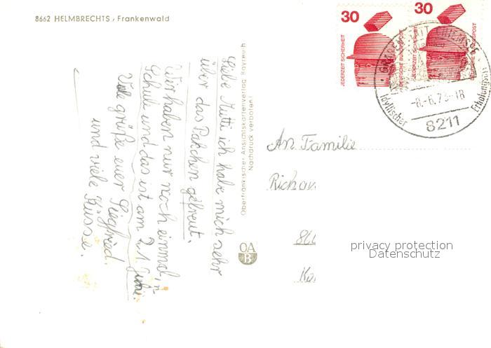 73094173 alte Postkarte Helmbrechts Oberfranken Frankenwald-Lied postalisch gelaufen Erhaltung siehe scans [LiesaD40] KatCode: 11110009475136