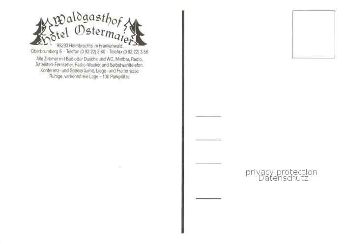 73758507 Helmbrechts Oberfranken Waldgasthof Hotel Ostermaier postalisch nicht gelaufen Erhaltung siehe scans [LiesaD40] KatCode: 11110009475136