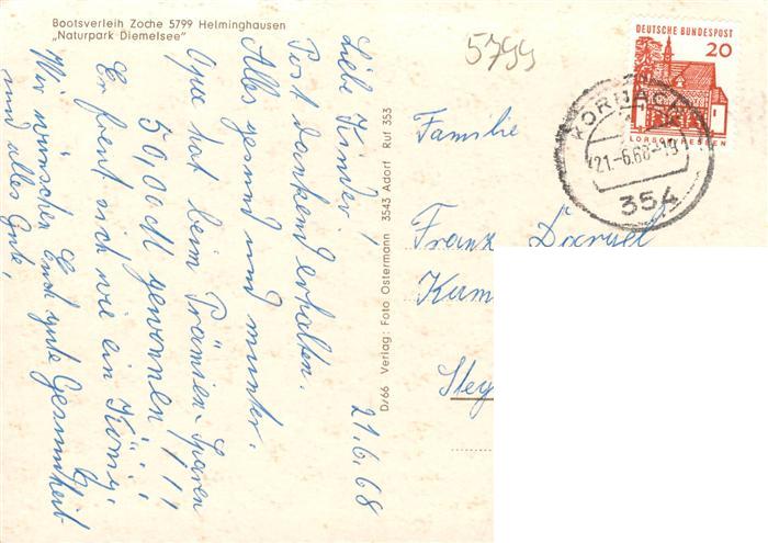 73942868 alte Postkarte Helminghausen Bootsverleih Zoche am Naturpark Diemelsee postalisch gelaufen Erhaltung siehe scans [WerneD78] KatCode: 11110005958024