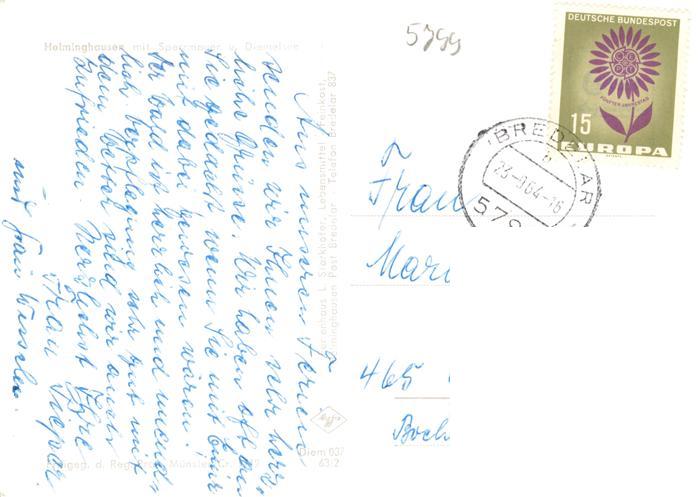 73942866 alte Postkarte Helminghausen Fliegeraufnahme postalisch gelaufen Erhaltung siehe scans [WerneD78] KatCode: 11110005958024