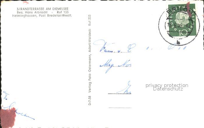 72453028 alte Postkarte Helminghausen Strandterrasse am Diemelsee Fliegeraufnahme postalisch gelaufen Erhaltung siehe scans KatCode: 11110005958024