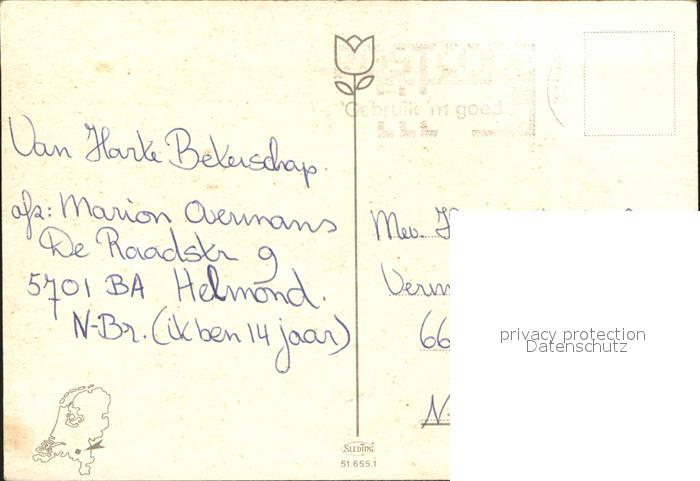 old postcard Helmond Veestratbrug Kirche Rathaus Sportzentrum Markt Schule postalisch gelaufen Erhaltung siehe scans
