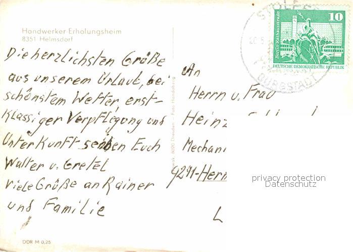 72728551 alte Postkarte Helmsdorf Leinefelde Handwerker Erholungsheim postalisch gelaufen Erhaltung siehe scans [FriedD77] KatCode: 11110016061046