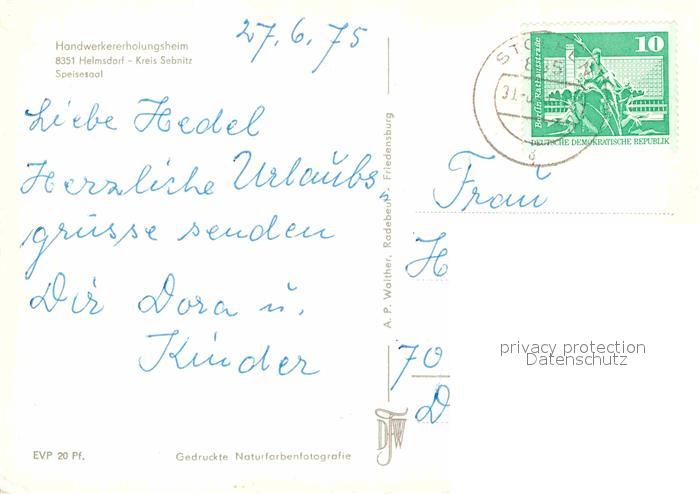 72680947 alte Postkarte Helmsdorf Leinefelde Handwerkerholungsheim postalisch gelaufen Erhaltung siehe scans [LiesaD40] KatCode: 11110016061046