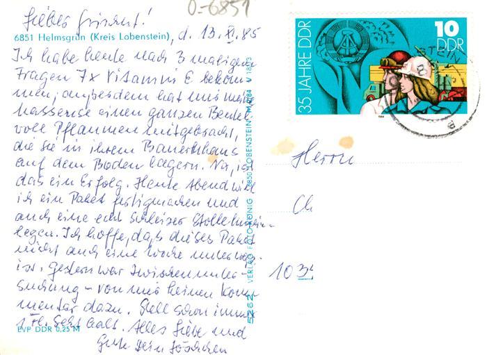 73890559 alte Postkarte Helmsgruen Bad Lobenstein Thueringen Panorama Ortspartien postalisch gelaufen Erhaltung siehe scans [FriedD77] KatCode: 11110016075062