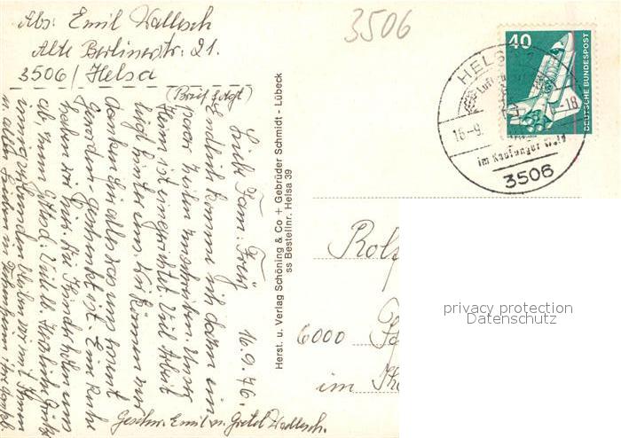 73181946 alte Postkarte Helsa Luftkurort Naturpark Meissner Kaufunger Wald Fliegeraufnahme Mariengrund Partie an der Losse postalisch gelaufen Erhaltung siehe scans [FriedD77] KatCode: 11110006633012