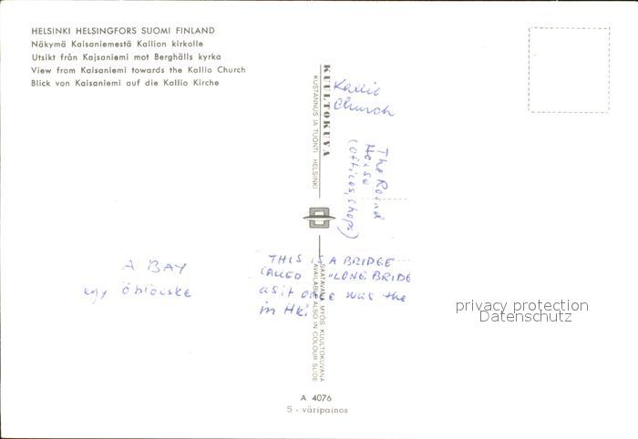 Helsinki Blick von Kaisaniemi zur Kallio Kirche postalisch nicht gelaufen Erhaltung siehe scans