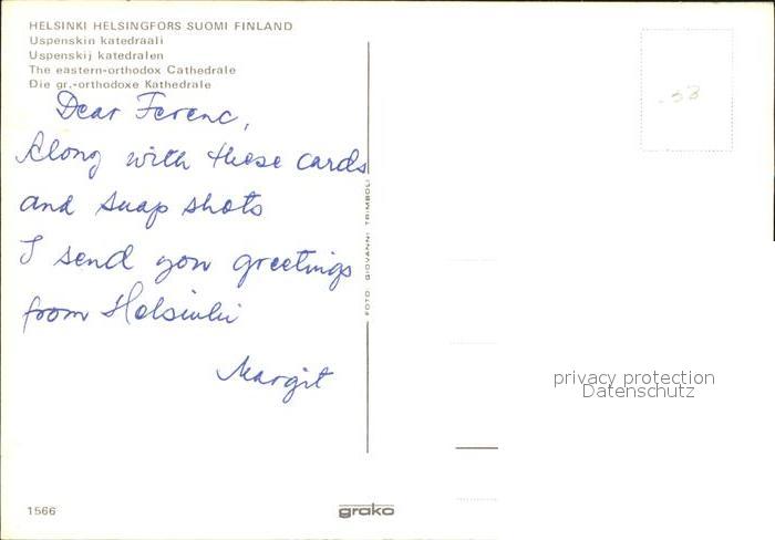 Helsinki Griech orthodoxe Kathedrale postalisch nicht gelaufen Erhaltung siehe scans