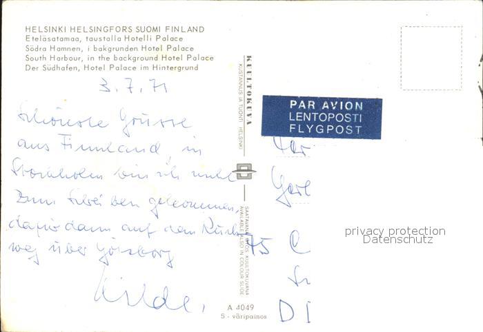 old postcard Helsinki Hafen Hotel Palace postalisch gelaufen Erhaltung siehe scans