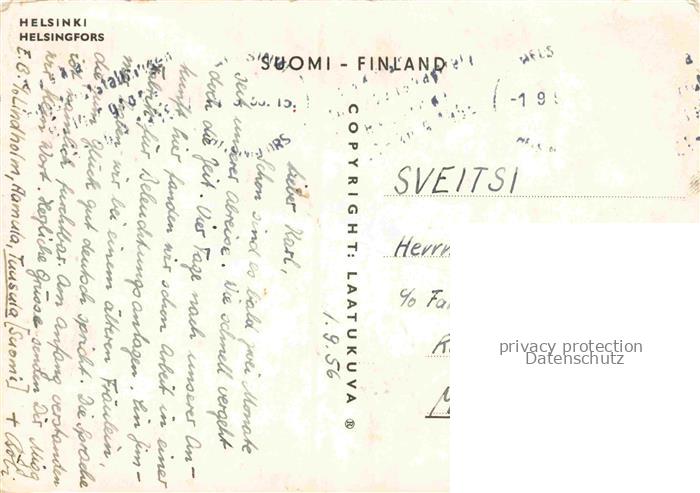 74136591 old postcard HELSINKI Helsingfors Suomi Kirchen Denkmal postalisch gelaufen Erhaltung siehe scans [IrynaD87] KatCode: 11160