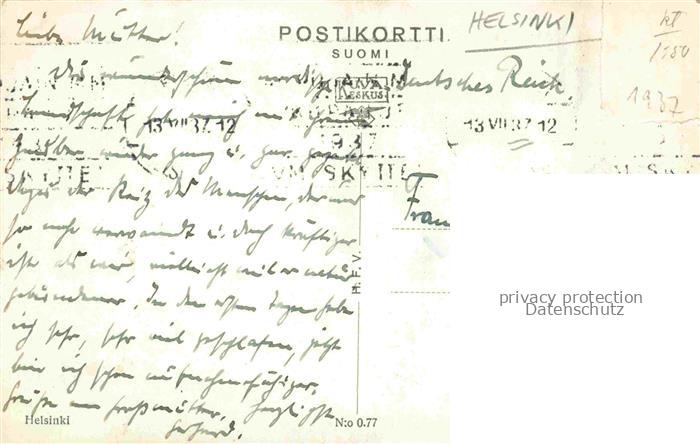 14117022 HELSINKI Helsingfors Suomi Stadtpanorama postalisch gelaufen Fliegeraufnahme Erhaltung siehe scans [FriedD77] Fliegeraufnahme old postcard Frie Katcode 11160
