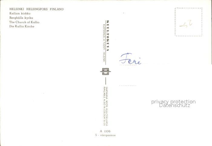 Helsinki Kallio Kirche postalisch nicht gelaufen Erhaltung siehe scans