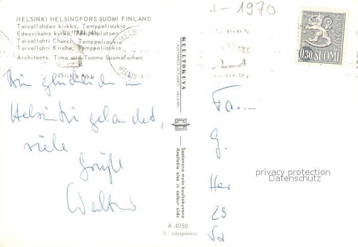 old postcard Helsinki Kirche postalisch gelaufen Erhaltung siehe scans [KathaD81]