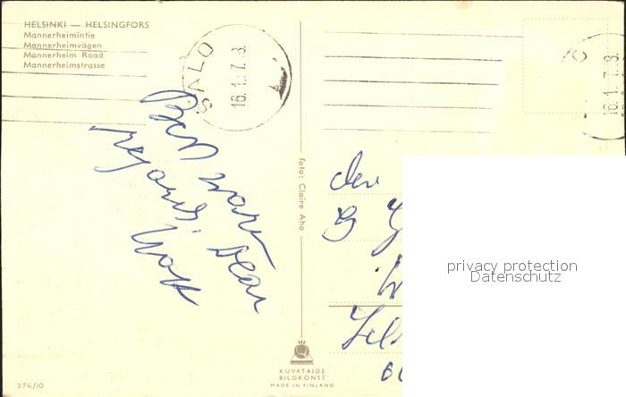 old postcard Helsinki Mannerheim Road postalisch gelaufen Erhaltung siehe scans