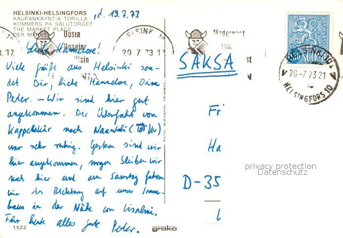 13597930 Helsinki Markt postalisch gelaufen Erhaltung siehe scans [WerneD78] old postcard Wern Katcode 11160