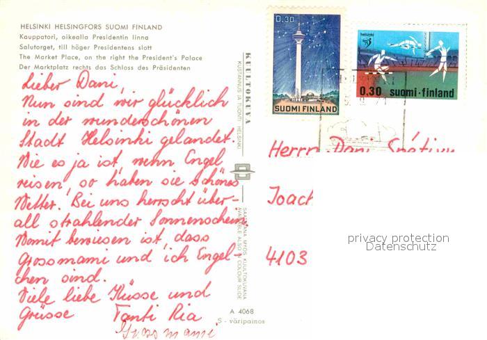 old postcard Helsinki Marktplatz mit Praesidentenschloss postalisch gelaufen Erhaltung siehe scans [WerneD78]