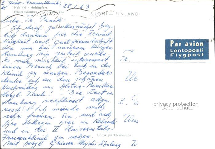 old postcard Helsinki Naistenklinikka postalisch gelaufen Erhaltung siehe scans
