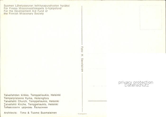 Helsinki Taivallahti Kirche Temppeliaukio postalisch nicht gelaufen Erhaltung siehe scans