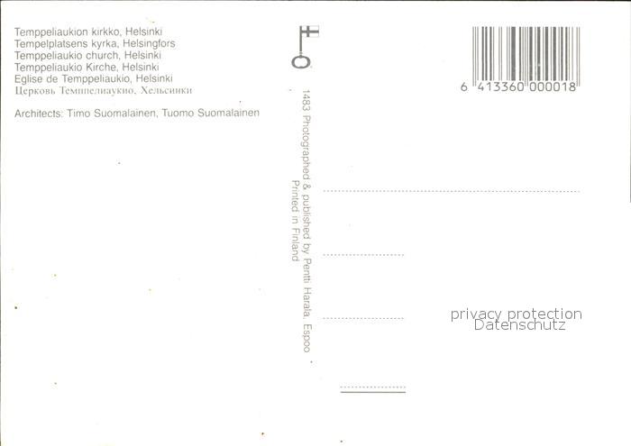 Helsinki Temppeliaukion Kirkko innen postalisch nicht gelaufen Erhaltung siehe scans