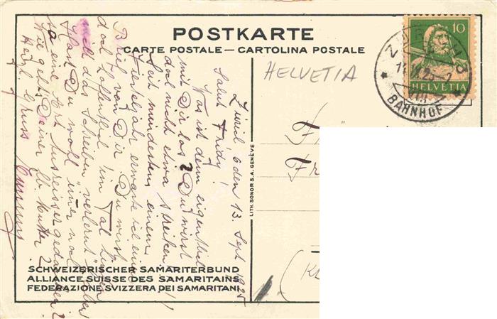 74005489 alte Postkarte Helvetia Schweiz Rotes Kreutz postalisch gelaufen Erhaltung siehe scans [SanaeD93] KatCode: 22200000000400