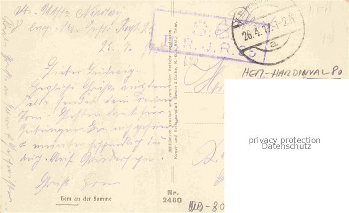 14109202 Hem-Hardinval AMIENS 80 Somme Ruines Grande Guerre Truemmer 1. Weltkrieg Schuetzengraben postalisch gelaufen Feldpostexpedition (Stempel) Erhaltung siehe scans [FriedD77] Feldpostexpedition (Stempel) alte Postkarte Frie Katcode 11170080280427