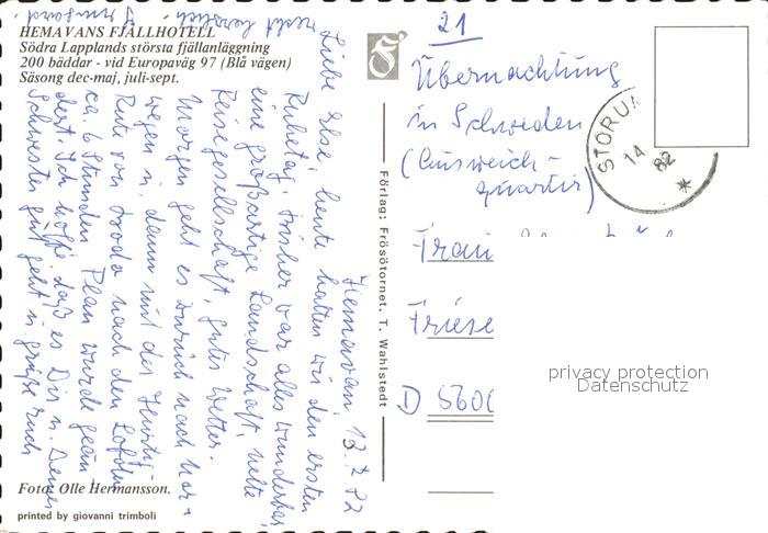 old postcard Hemavan Fjaellhotell Fliegeraufnahme postalisch gelaufen Erhaltung siehe scans
