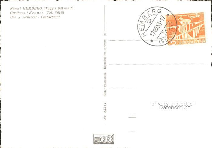 11630453 alte Postkarte Hemberg SG Gasthaus Krone postalisch gelaufen Erhaltung siehe scans KatCode: 11470190585784