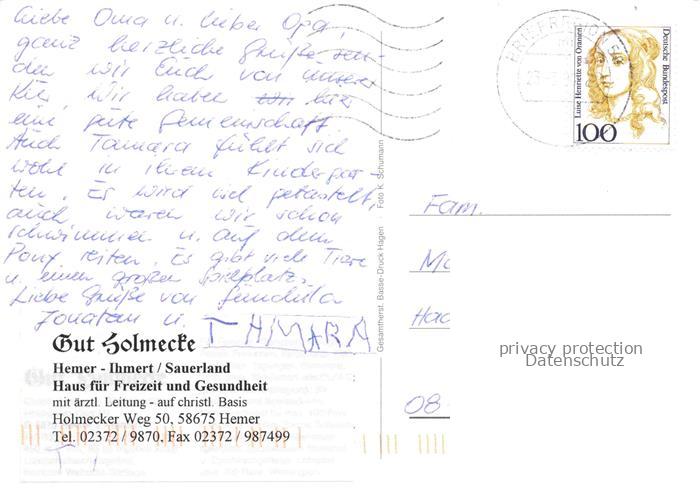 74022589 Hemer NRW Gut Solmecke Haus fuer Freizeit und Gesundheit Luftaufnahme postalisch gelaufen Erhaltung siehe scans [FriedD77] alte Postkarte Frie Katcode 11110005962016