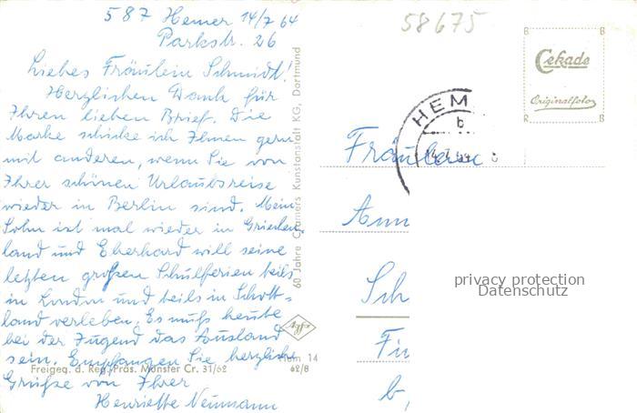 74099261 alte Postkarte Hemer NRW Panorama Stadt am Felsenmeer Bredenbrucher Tal postalisch gelaufen Fliegeraufnahme Erhaltung siehe scans [FriedD77] KatCode: 11110005962016