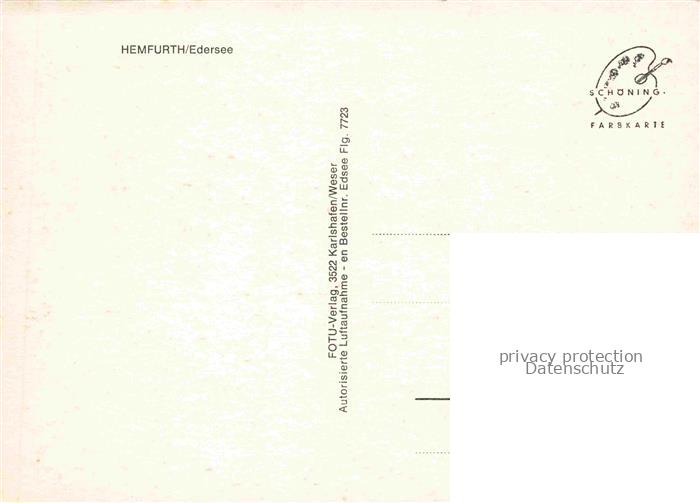 74023649 Hemfurth-Edersee Edertal Hessen Fliegeraufnahme postalisch nicht gelaufen Erhaltung siehe scans [FriedD77] KatCode: 11110006635009